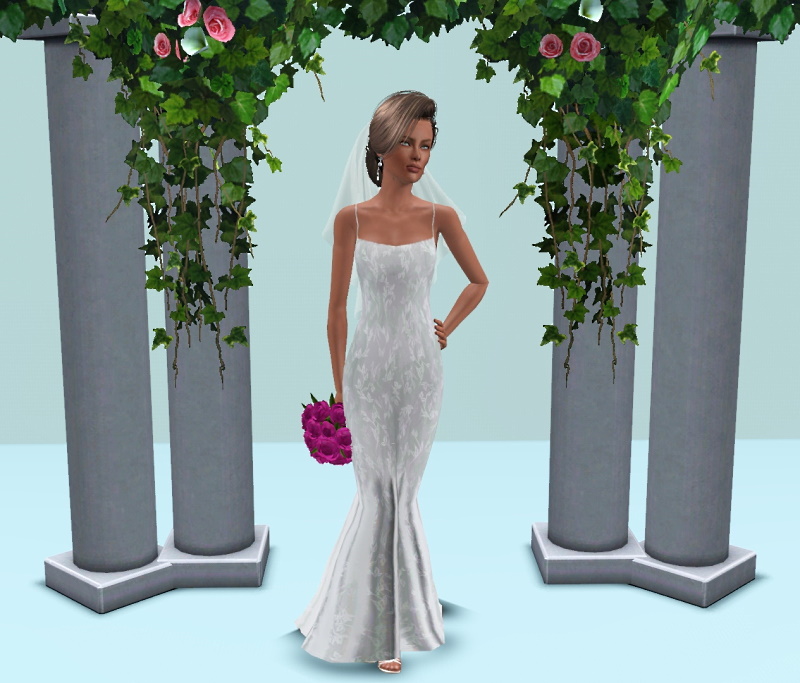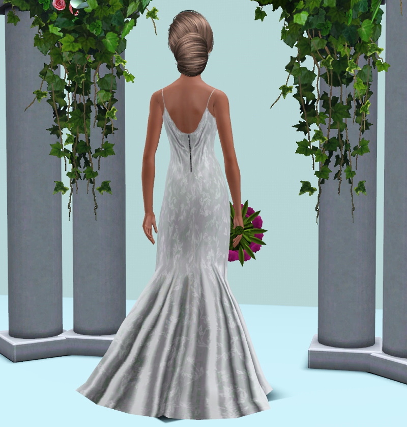Here is another dress I've been meaning to upload for awhile now. It's a wedding/evening gown with a mermaid hem. Fully recolorable. Make sure your sims doesn't were boots or shoes that go higher along the legs because the hem might catch their texture. Dress is for young adults and adults in formal category.